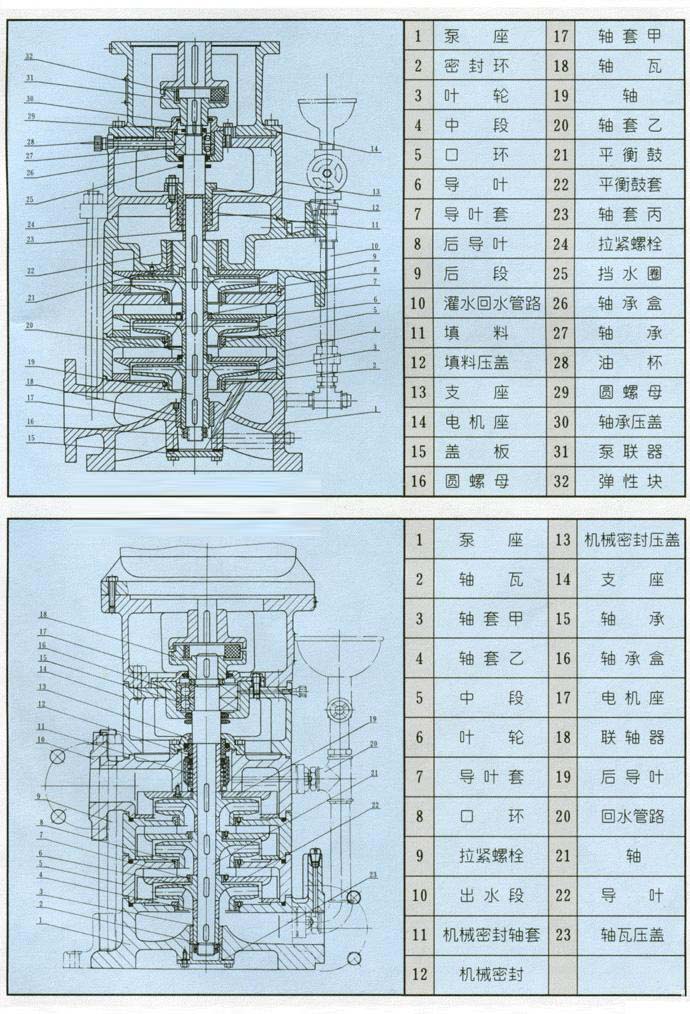 1、本系列泵為立式、多級、節(jié)段式結(jié)構(gòu),用螺栓把進水段、中段、出水段緊固成一體,泵每級裝一個葉輪及導(dǎo)葉,其軸向力采用水力平衡,殘余軸向力由一個或一對球軸承承受;