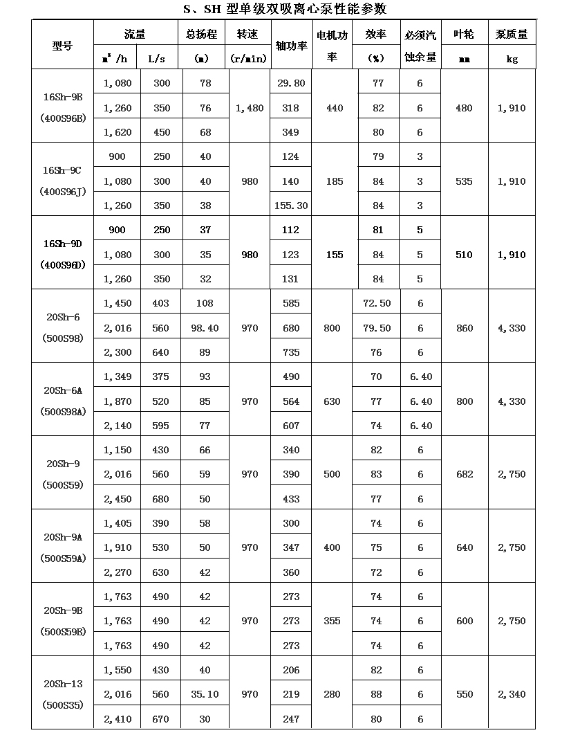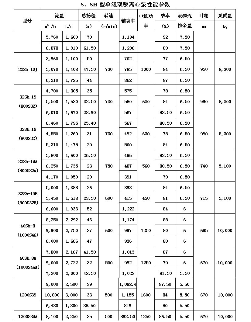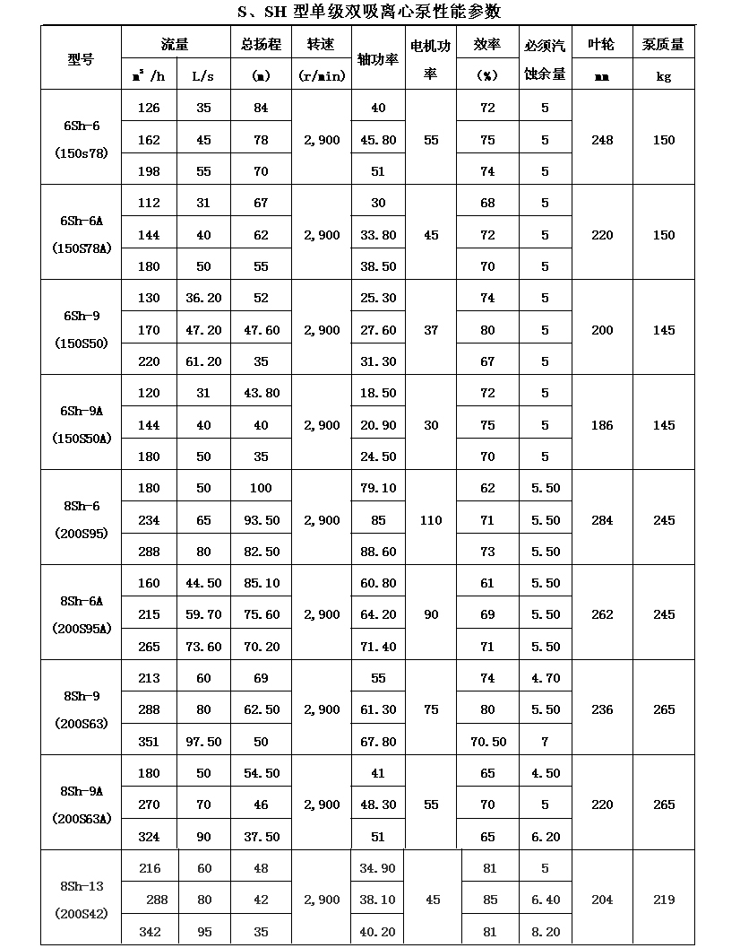 吸離心泵、S,SH型單級(jí)雙吸泵殼中開(kāi)之離心泵,供抽送清水或物理化學(xué)類(lèi)似于水的其它液體之用。被輸送液體溫度不得高于80℃。