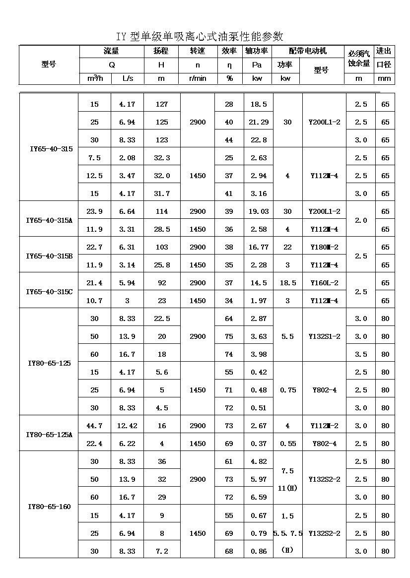 IY系列單級單吸輸油離心泵,適用于輸送不含固體顆粒的石油產(chǎn)品,被輸送介質(zhì)的溫度在-20℃~+150℃之間,泵的***高工作壓力布大于1.6MPa,吸入口壓力不大于0.8MPa,主要用于油田、煉廠、石油化學(xué)工業(yè)。其性能參數(shù)為:流量Q:6.3~400m3;揚程H:5~125。