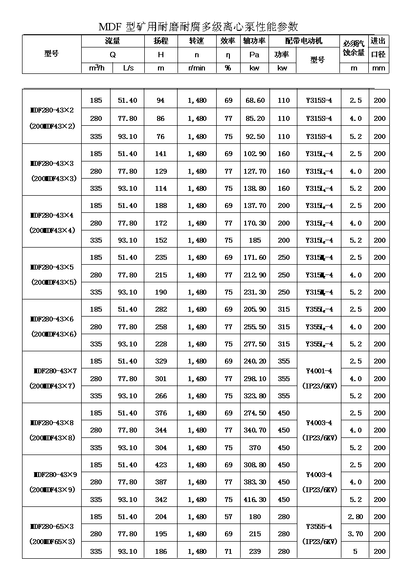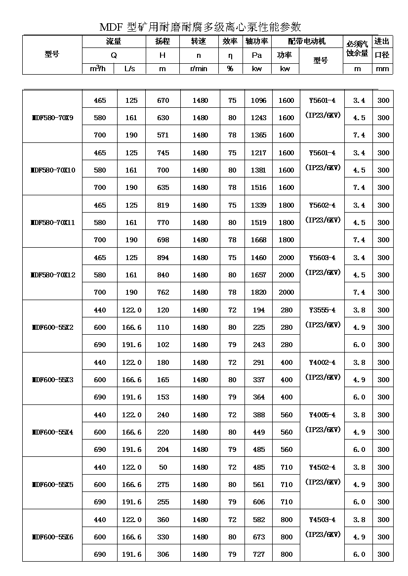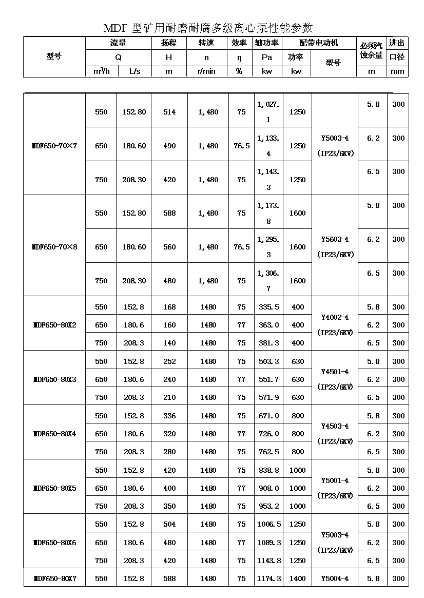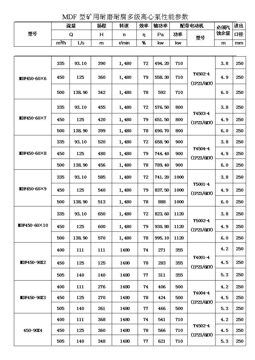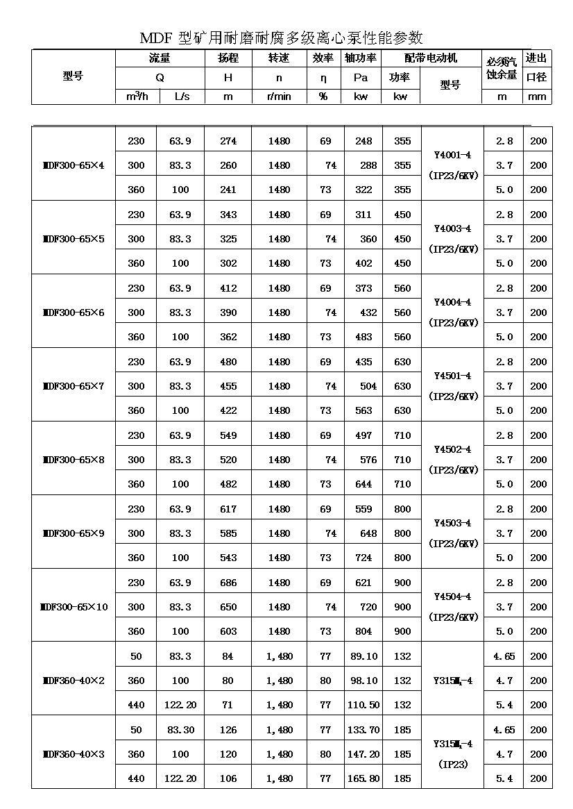 流量:Q=46-450m3/h 揚(yáng)程:H=60-1080m
